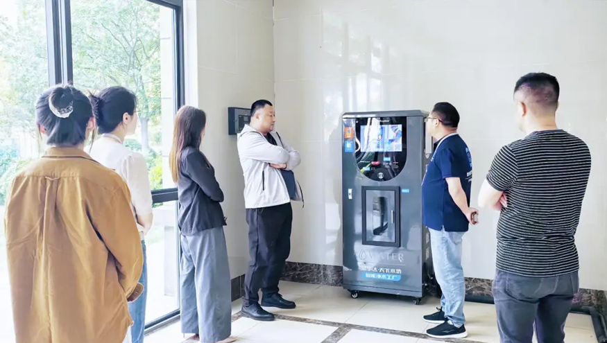 為了更直觀地感受項目的實際應(yīng)用效果,客戶一行來到合肥樣板“工廠”,自榮事達(dá)社區(qū)智能凈水工廠入駐該小區(qū)以來,現(xiàn)制現(xiàn)飲的新鮮直飲水已融入居民日常生活,無論是泡茶、泡奶粉,還是煮飯煲湯,都離不開它,受到小區(qū)居民的廣泛好評。