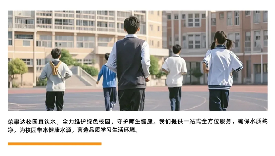 榮事達(dá)校園直飲水已為全國(guó)眾多幼兒園、小學(xué)、中學(xué)以及大學(xué)帶去健康好水,贏得了師生青睞。榮事達(dá)校園直飲水還可根據(jù)每所學(xué)校的具體需求量身定制直飲方案。從需求分析、方案設(shè)計(jì)、設(shè)備選型到安裝調(diào)試、后期運(yùn)維,榮事達(dá)提供了一站式、全方位的服務(wù),確保了直飲水項(xiàng)目的順利實(shí)施與高效運(yùn)行。
