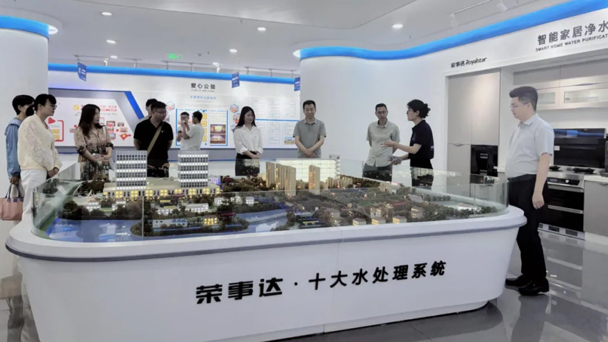 活動伊始,在榮事達水工業(yè)工作人員的引導下,長豐縣融媒體中心黨總支一行參觀了榮事達管道直飲水項目、全屋智慧凈水項目、社區(qū)智慧飲水項目以及校園直飲水項目等。領導一行全面了解企業(yè)發(fā)展歷程、公益實踐及黨建成果。