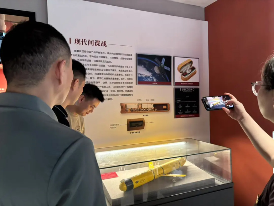 隨后一行人走進(jìn)國家安全教育館,在講解員聲情并茂的講述下,黨員們了解到李克農(nóng)、關(guān)露、徐楚光等隱蔽戰(zhàn)線情報(bào)人員,他們深入險(xiǎn)境為黨和國家作出卓越貢獻(xiàn)。聆聽的黨員們深受觸動(dòng),深切體會(huì)到革命先輩的偉大。