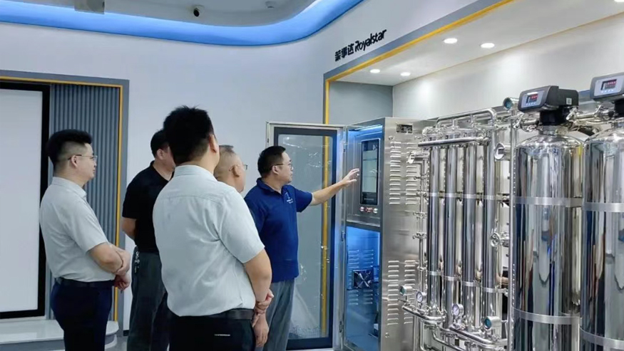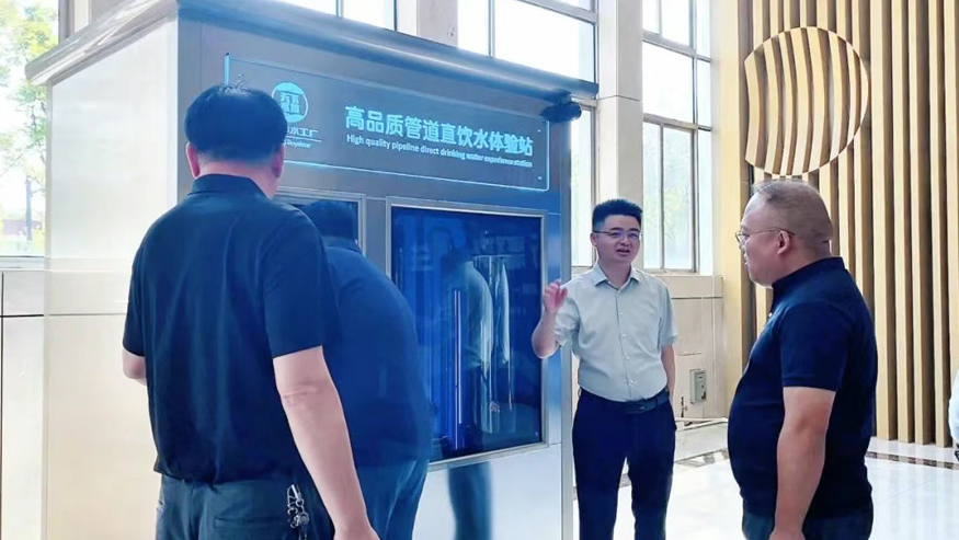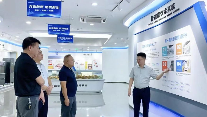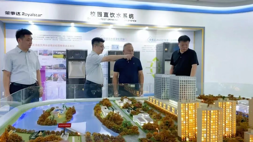白冰董事長一行認真聽取講解,還就榮事達管道直飲水項目的設(shè)備性能、技術(shù)原理等細節(jié)與陪同人員深入交流。榮事達管道直飲水項目是針對社區(qū)、學(xué)校、醫(yī)院、企事業(yè)單位及工廠等場景,提供定制化飲水模式,涵蓋社區(qū)智慧水站、校園智慧凈水屋、高端直飲水設(shè)備及變頻供回水系統(tǒng),旨在為民眾打造便捷、高端、健康的飲水服務(wù)。