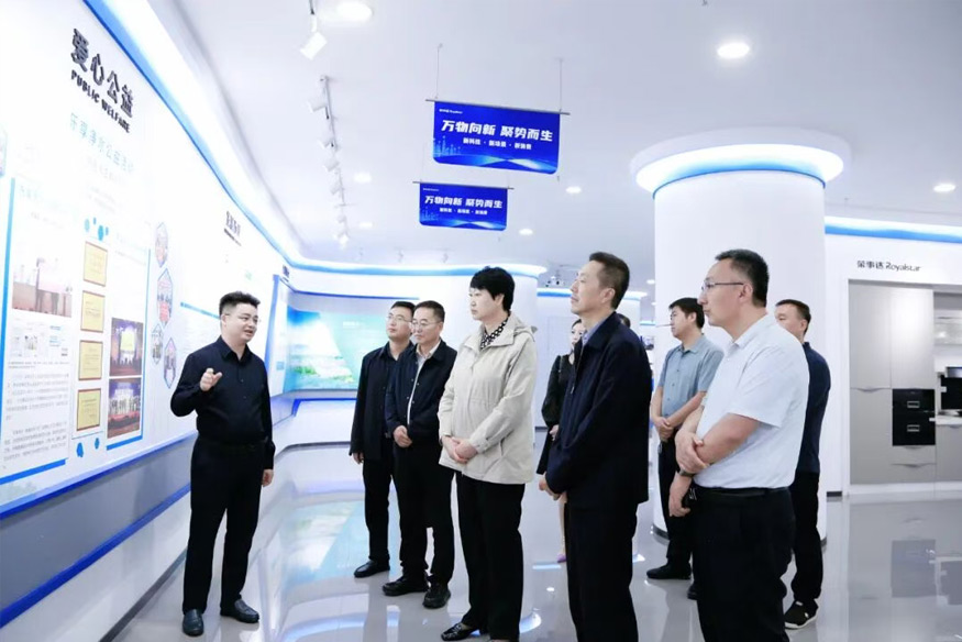 在智慧水世界展廳,領導一行了解公司的發(fā)展歷程,公益事業(yè)及黨建引領下的企業(yè)文化等。